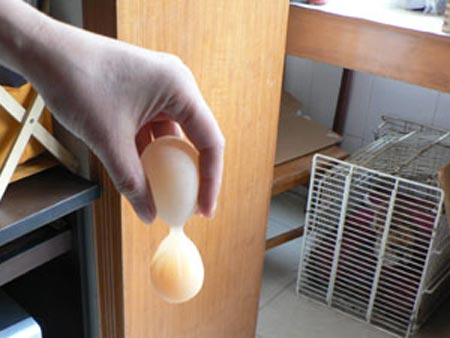 A senhora Dong (que mora numa provincia no Nordeste da China) quando acordou essa manhã teve uma surpresa, uma de suas galinhas havia botado um ovo em formato de 8!